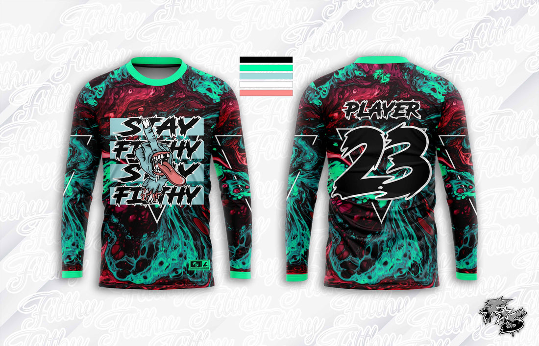 MATERIAL: 95% polyester 5% spandex FIT: Loose, Uni-sex DECORATION: Full Sublimation DESIGNER NOTES: The perfect blend of performance...